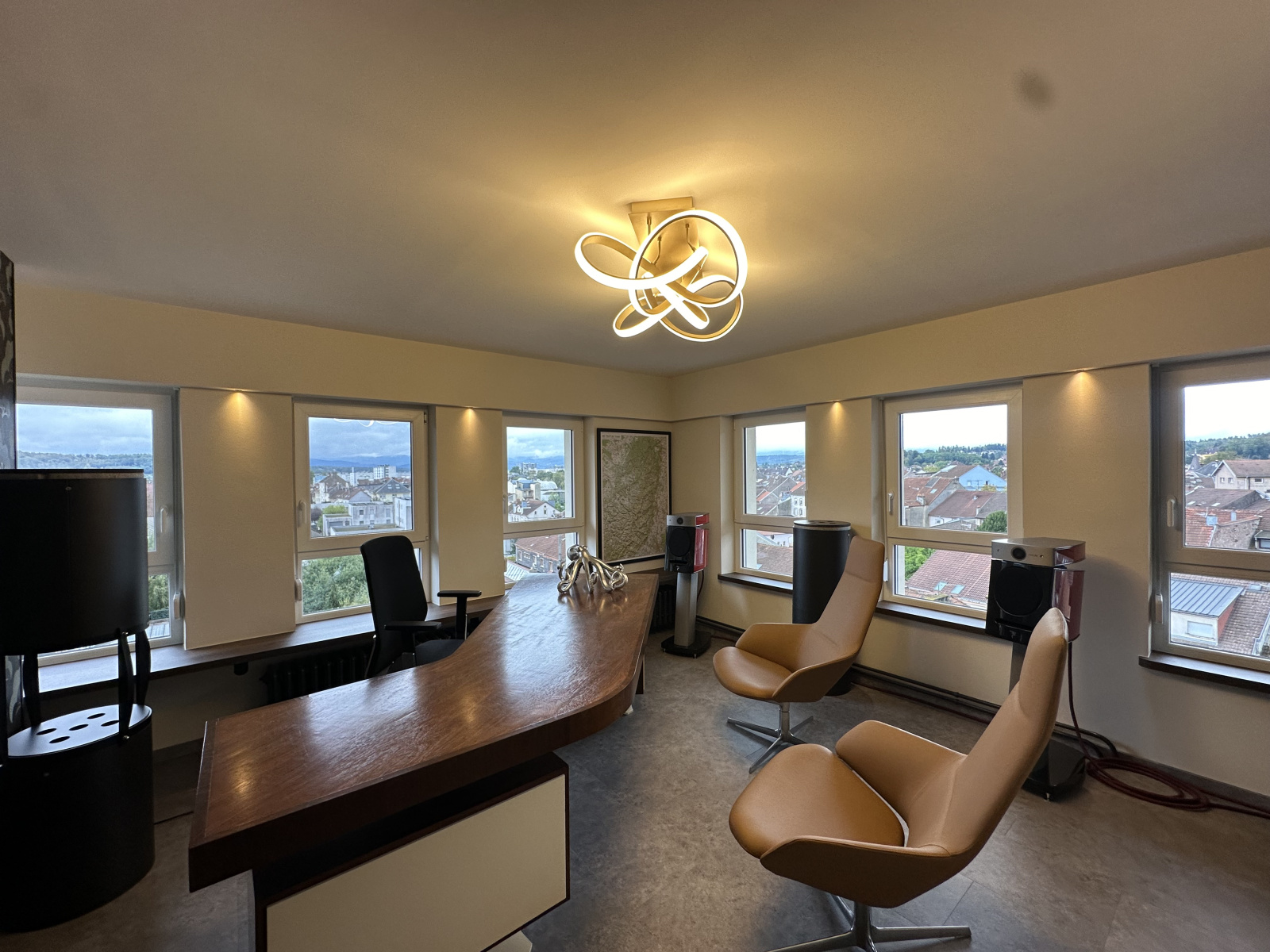 Appartement composé de : belle cuisine équipée avec vue, une pièce salon/bureau avec une superbe vue, une chambre, deux pièces actuellement à usage de bureaux, une salle de bains, W.C. séparé.