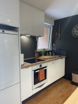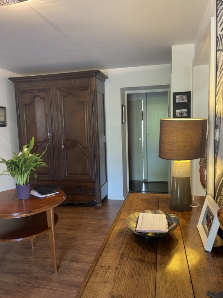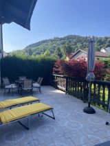 Appartement 1 – 92 m² – Rez-de-jardin : un bureau, deux chambres dont une avec salle d’eau privative, cuisine semi-ouverte, salon/séjour avec accès terrasse de 30m² et accès jardin depuis la terrasse, salle d'eau (douche, vasque), WC séparé, un garage. Chauffage électrique + poêle à bois. Libre